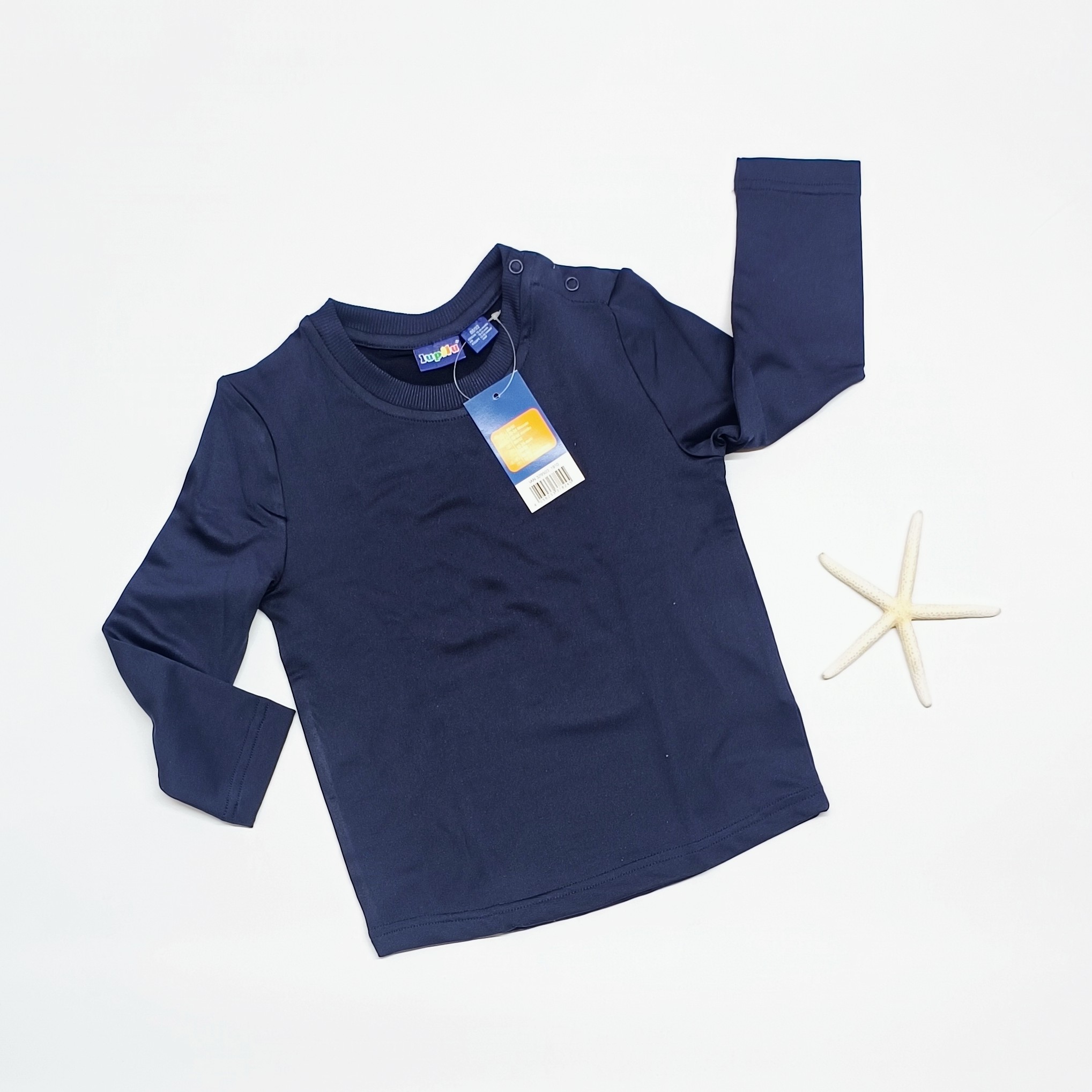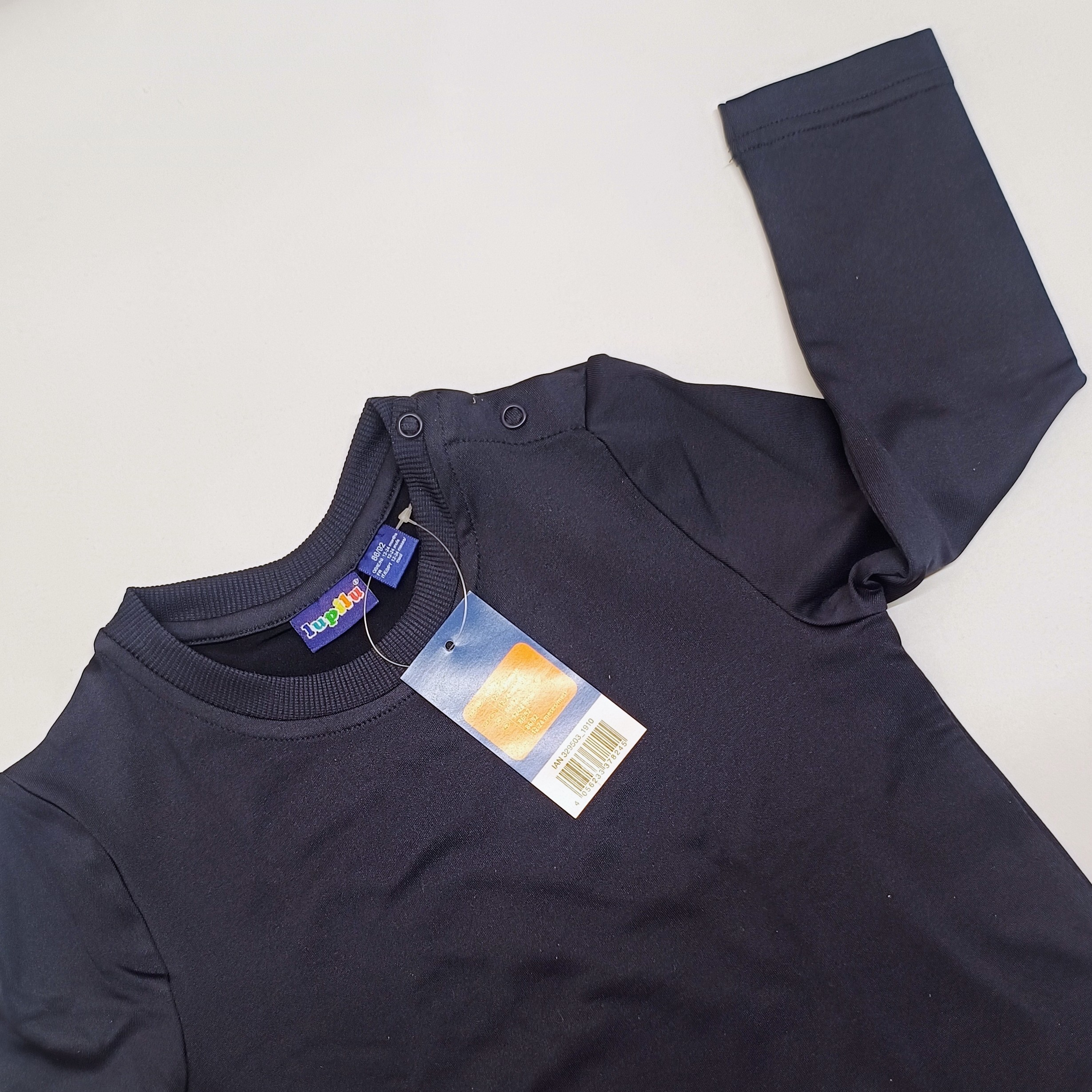 بلوز آستین بلند سرمه ای پسرانه دو دکمه در سرشانه برای تعویض راحت تر لباس داخلش یه حالت کرکی داره